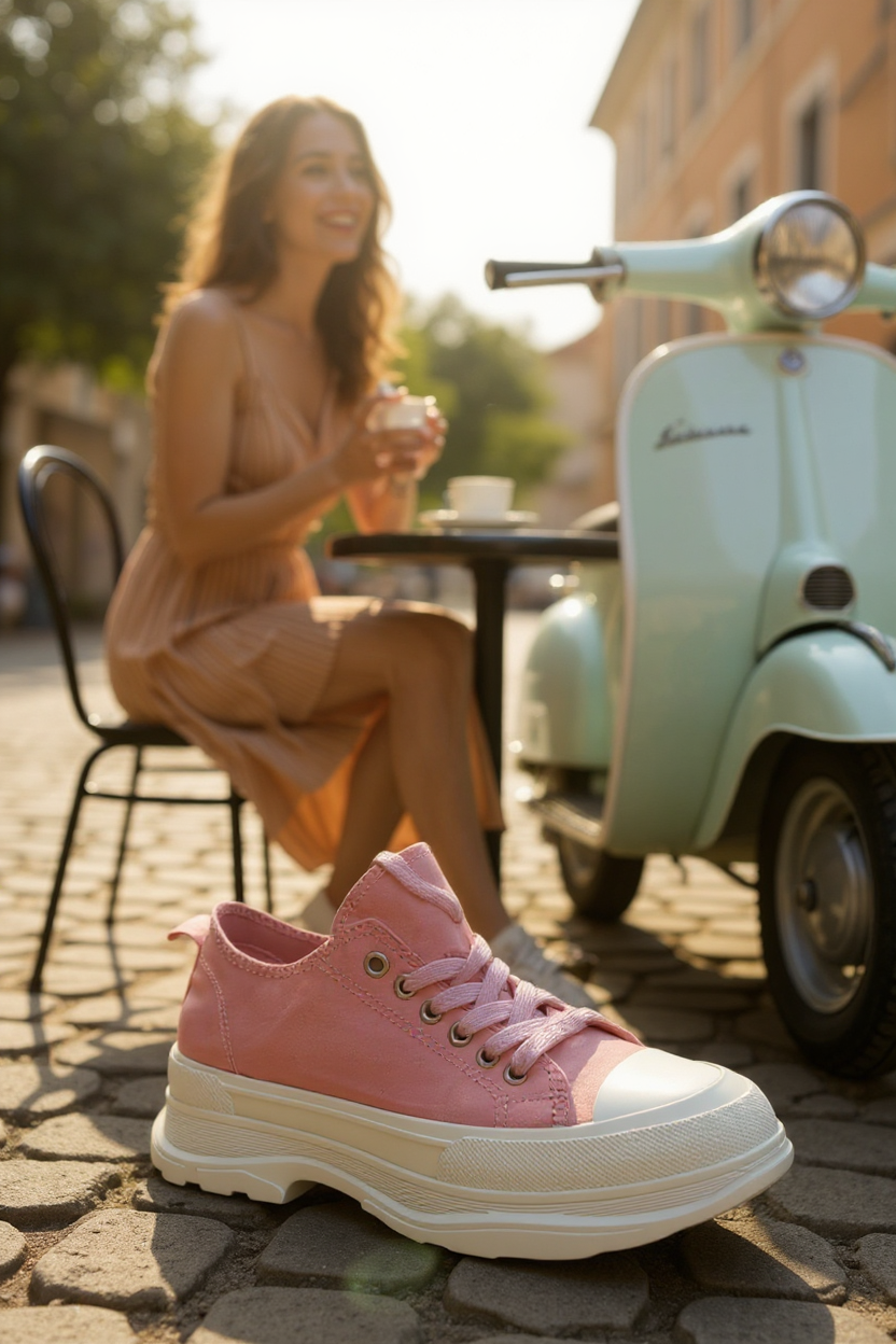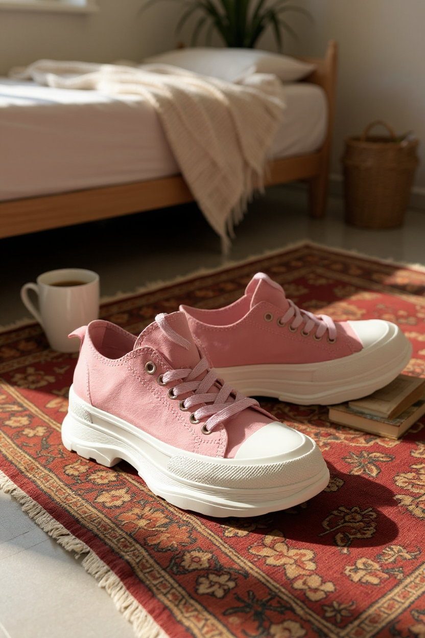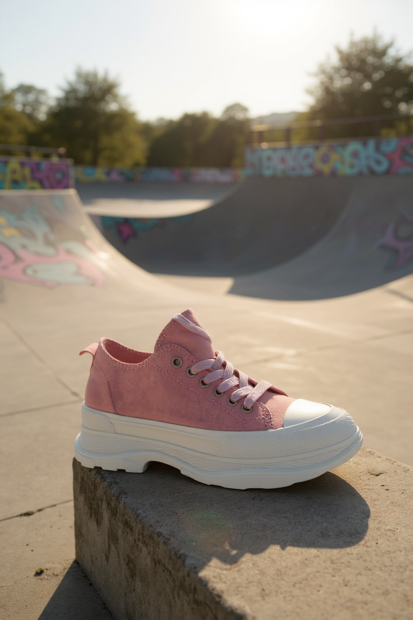 Ces baskets basses unisexes en toile au coloris Rose apportent une touche de fraîcheur à tous les styles : du look décontracté au streetwear moderne.