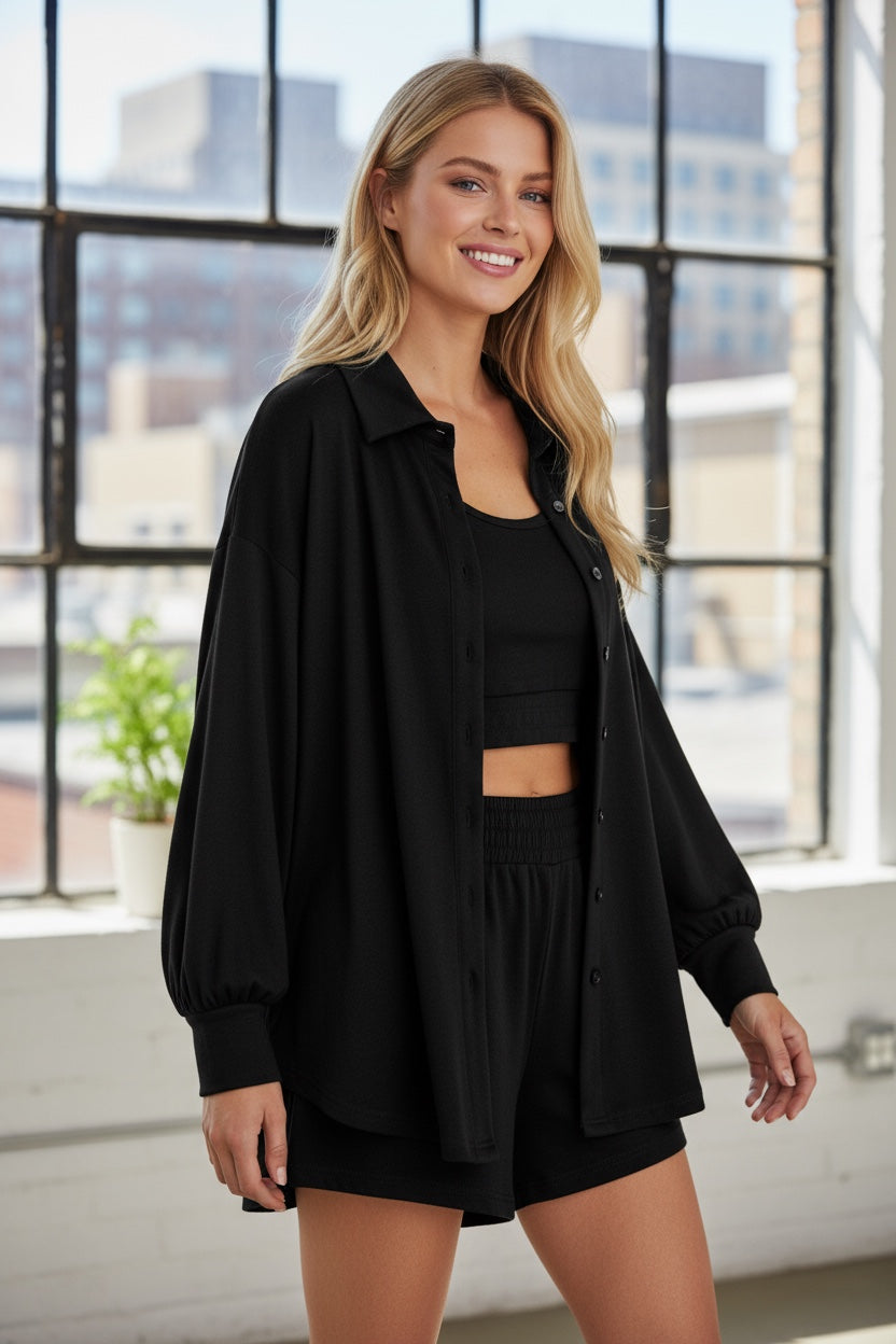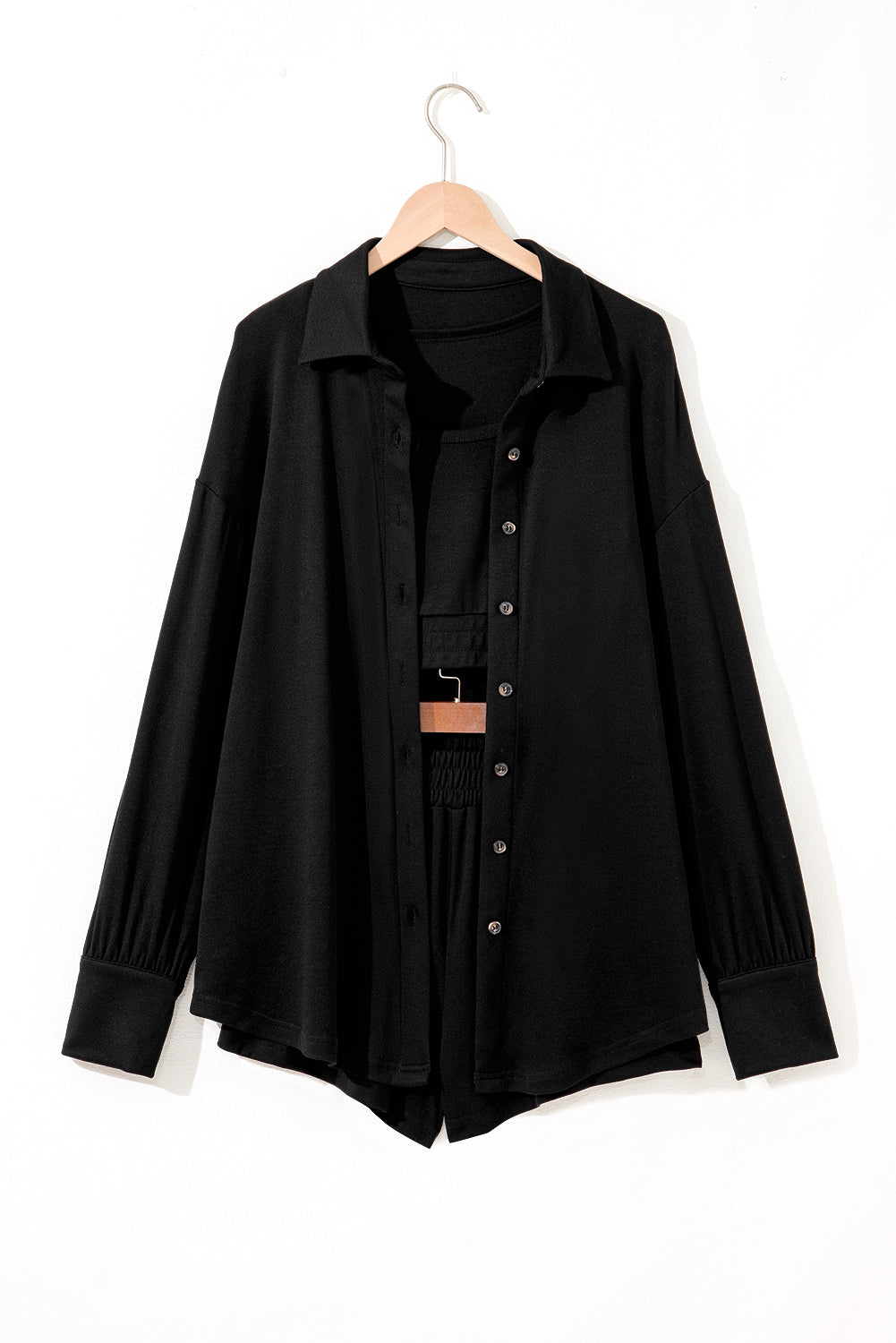 Ensemble 3 pièces : débardeur court, short et cardigan