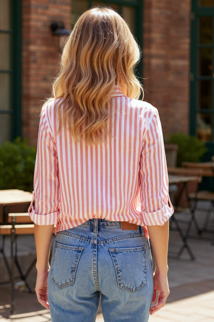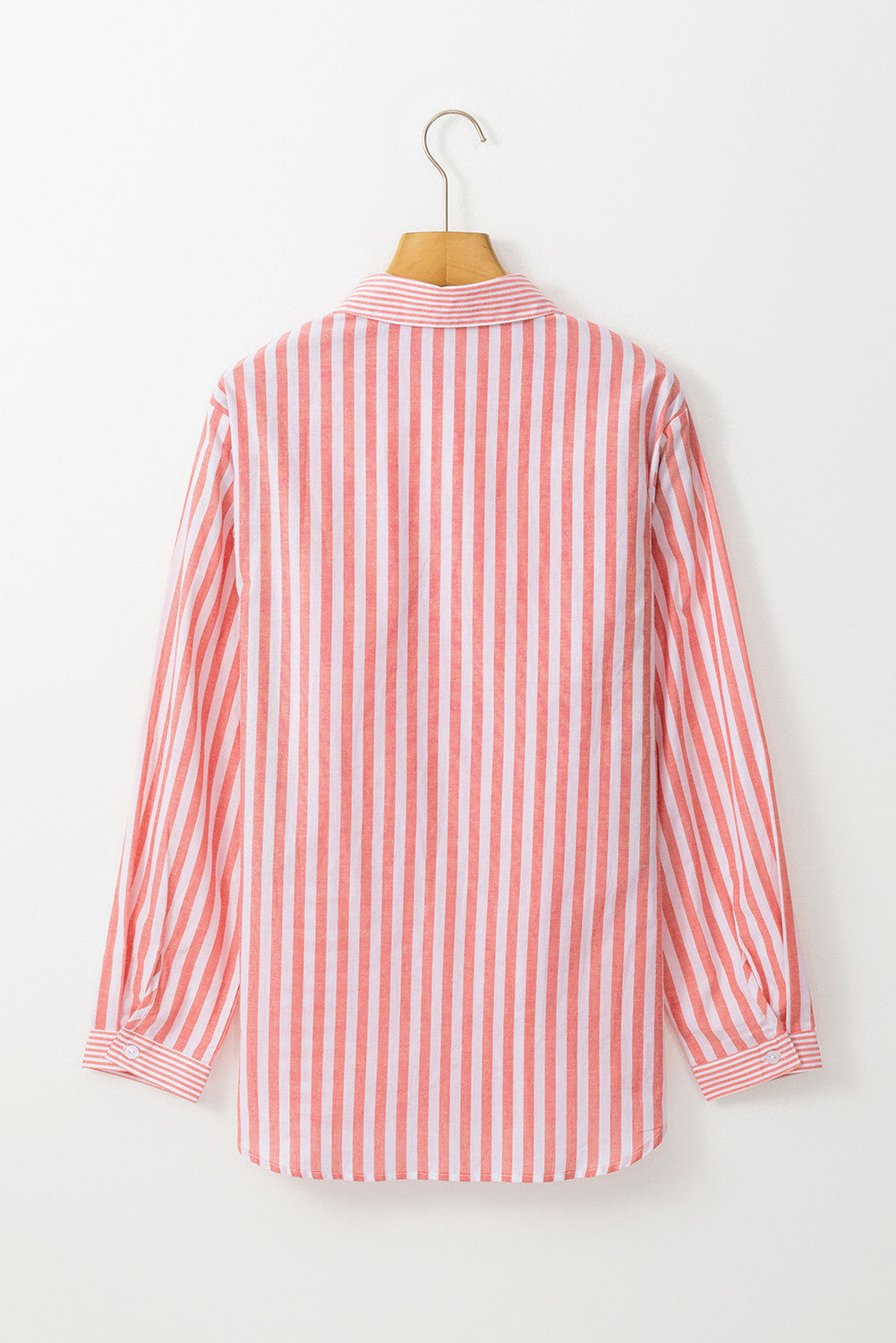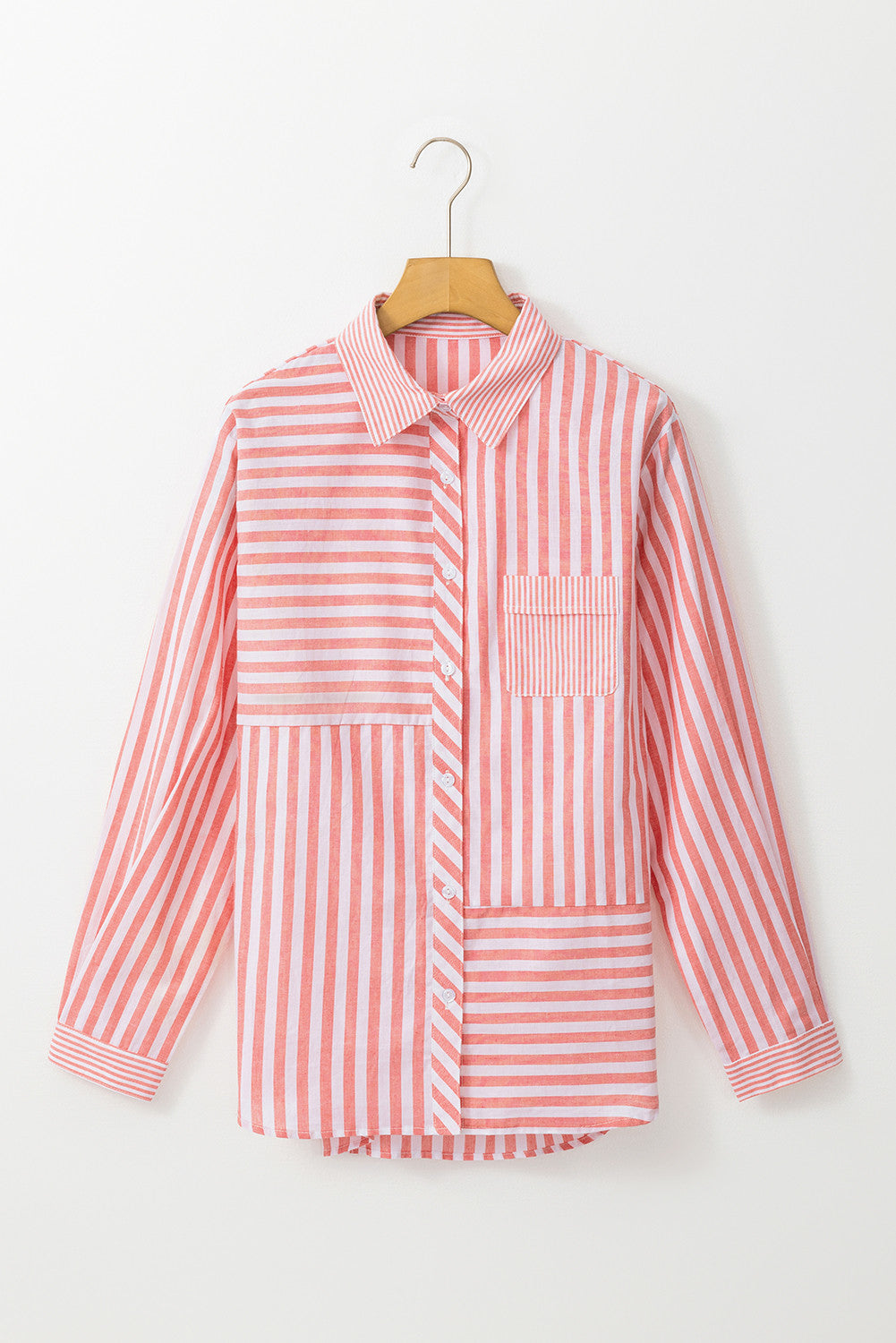 Bring a touch of relaxed elegance to your wardrobe with this timeless striped shirt. Its classic cut flatters all the silhouettes and ensures daily comfort. Equipped with a structured shirt collar, a button closure on the front and a rounded hem, it can be worn both in a dressed as relaxed. The patch pocket on the chest brings a modern and refined note that distinguishes this model from classic basics.