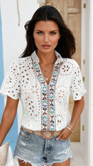 Treat yourself to a chic and sophisticated look with this short-sleeved blouse, designed to combine comfort and elegance. Its refined design adapts perfectly to various occasions, whether it is an office outfit, a special event or a relaxed and stylish look.