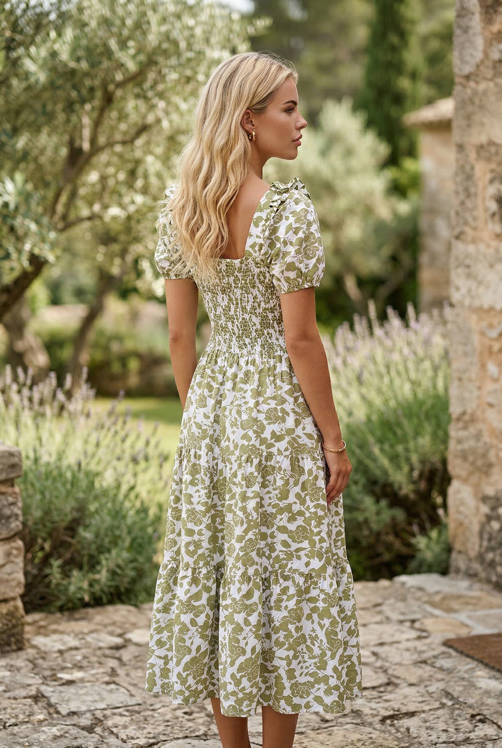 L'imprimé floral et le col carré se combinent pour un look bohème classique.