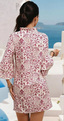 This dress perfectly embodies elegance and exoticism thanks to its magnificent cashmere print with complex and refined patterns. Its unique design ensures you a look that is both sophisticated and trendy, ideal for all occasions, whether it is an outing with friends, an elegant dinner or a day in the office.