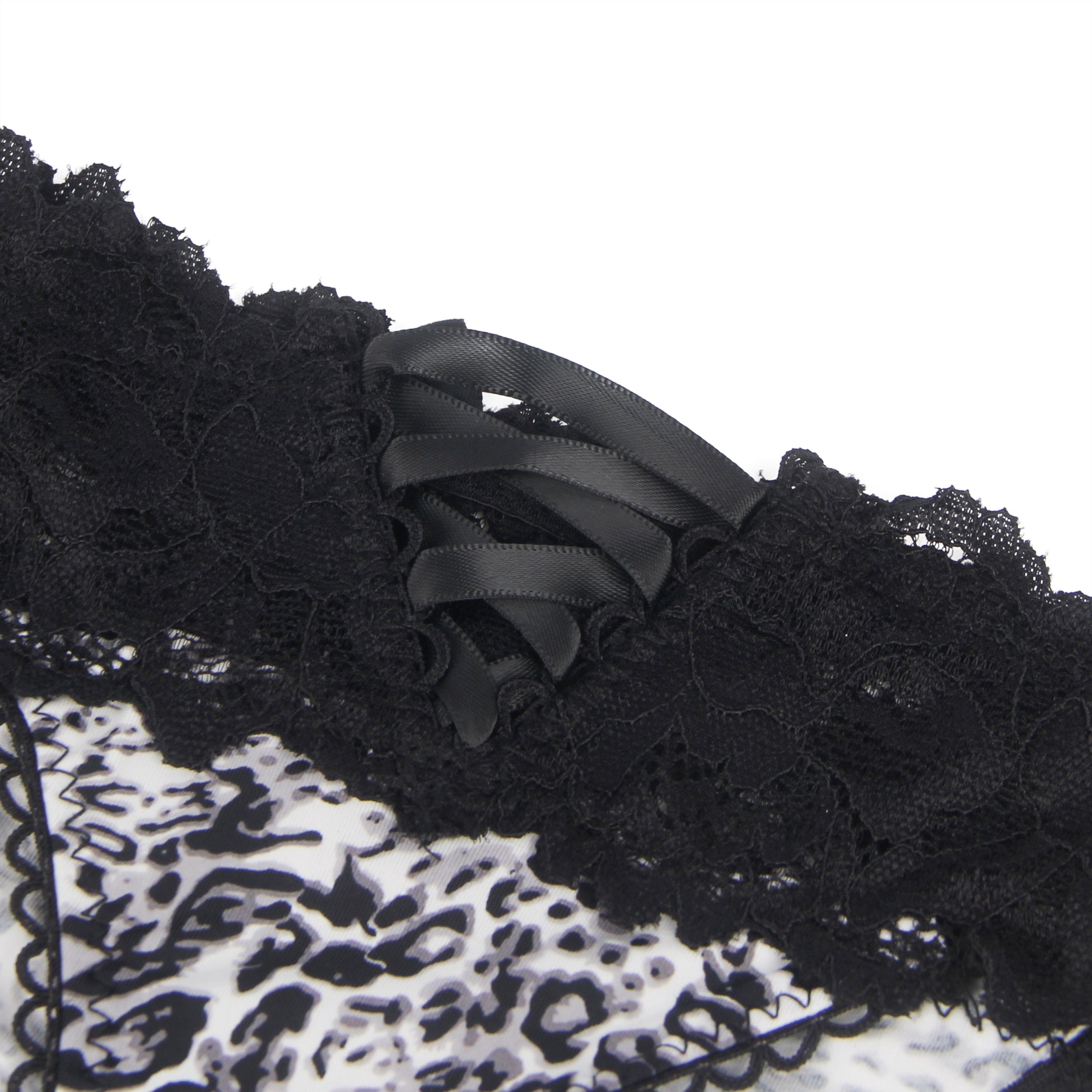 String orné d'une large bande de dentelle noire à la taille. Laçage croisé au dos pour une touche sexy et raffinée. Gousset doublé en coton.