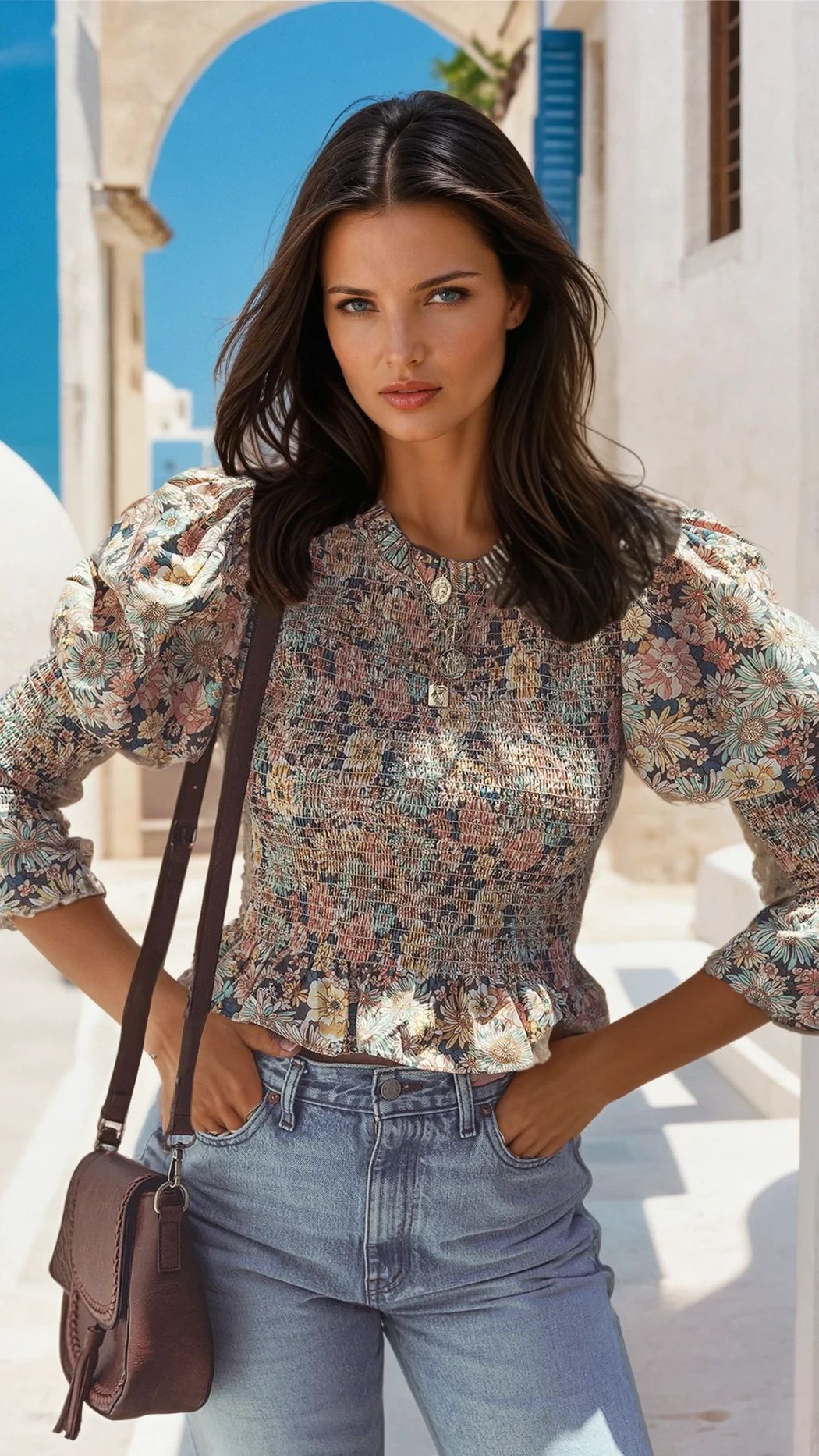 The fabric of this blouse is slightly elastic thanks to the addition of elastane. This allows a comfortable adjustment while maintaining a good shape. The smocked back the back adds flexibility, offering you better freedom of movement without compromising style.