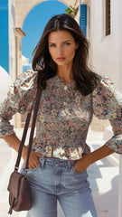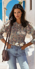 This floral print blouse is designed to add a touch of freshness and playfulness to your outfit. The delicate floral print and vibrant colors bring a joyful dimension to your daily looks, while offering an elegant and refined appearance.