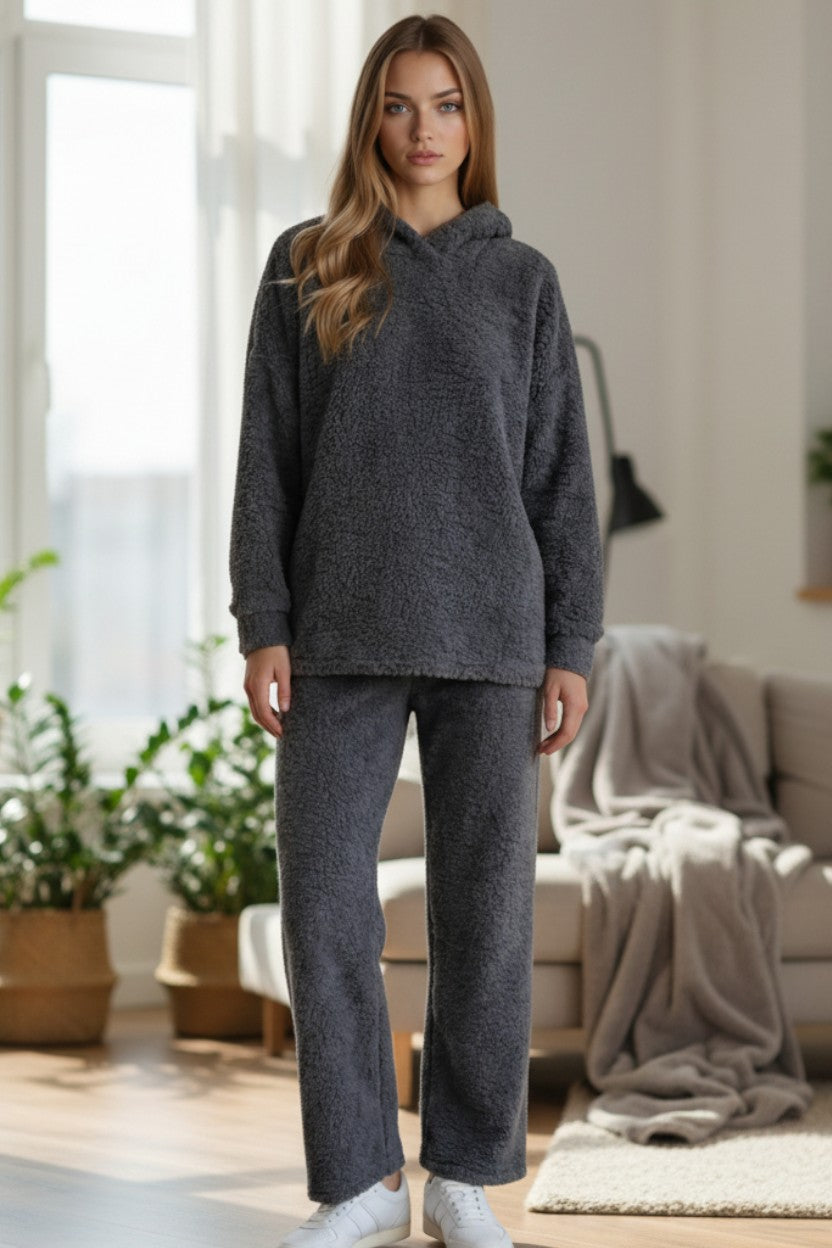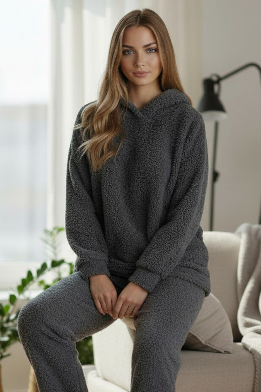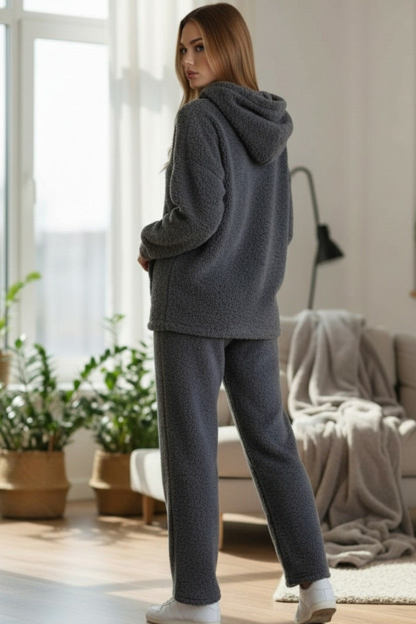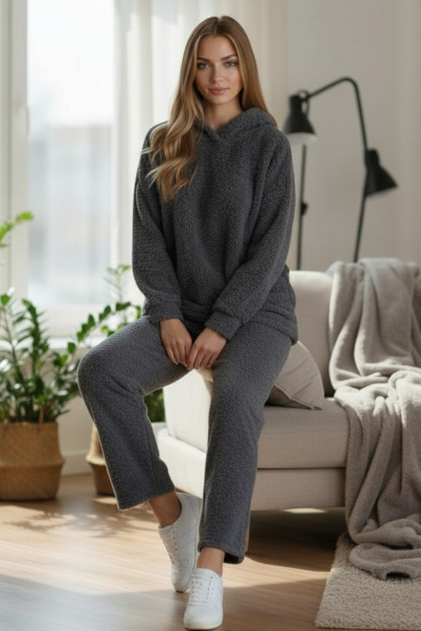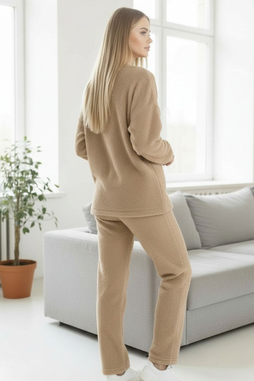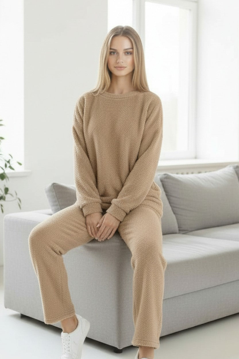 Un ensemble deux pièces pensé pour le confort absolu sans renoncer au style. Sa maille texturée douce enveloppe la silhouette avec naturel, idéale pour les journées détente comme pour un look casual chic à la maison ou en extérieur. Une allure moderne, épurée et chaleureuse, à porter sans modération.