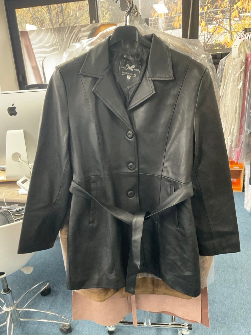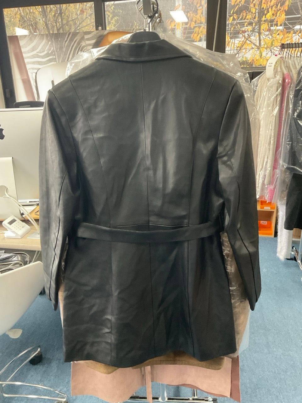 Un style trench revisité en version cuir pour un look structuré et affirmé. Cette veste en cuir noir vous accompagnera avec élégance durant les saisons fraîches.