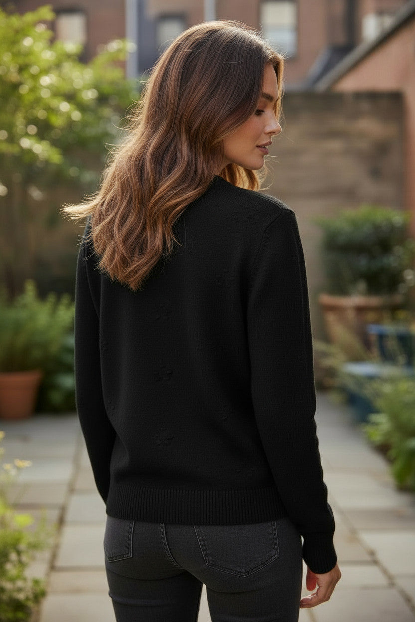 Laissez-vous envelopper par une caresse de douceur avec ce pull finement travaillé, orné de petites broderies florales ton sur ton. Son tissu effet cachemire offre un confort inégalé, parfait pour des journées cocooning ou des looks élégants et naturels. Une pièce seconde main en parfait état, à intégrer dans tous les dressings.