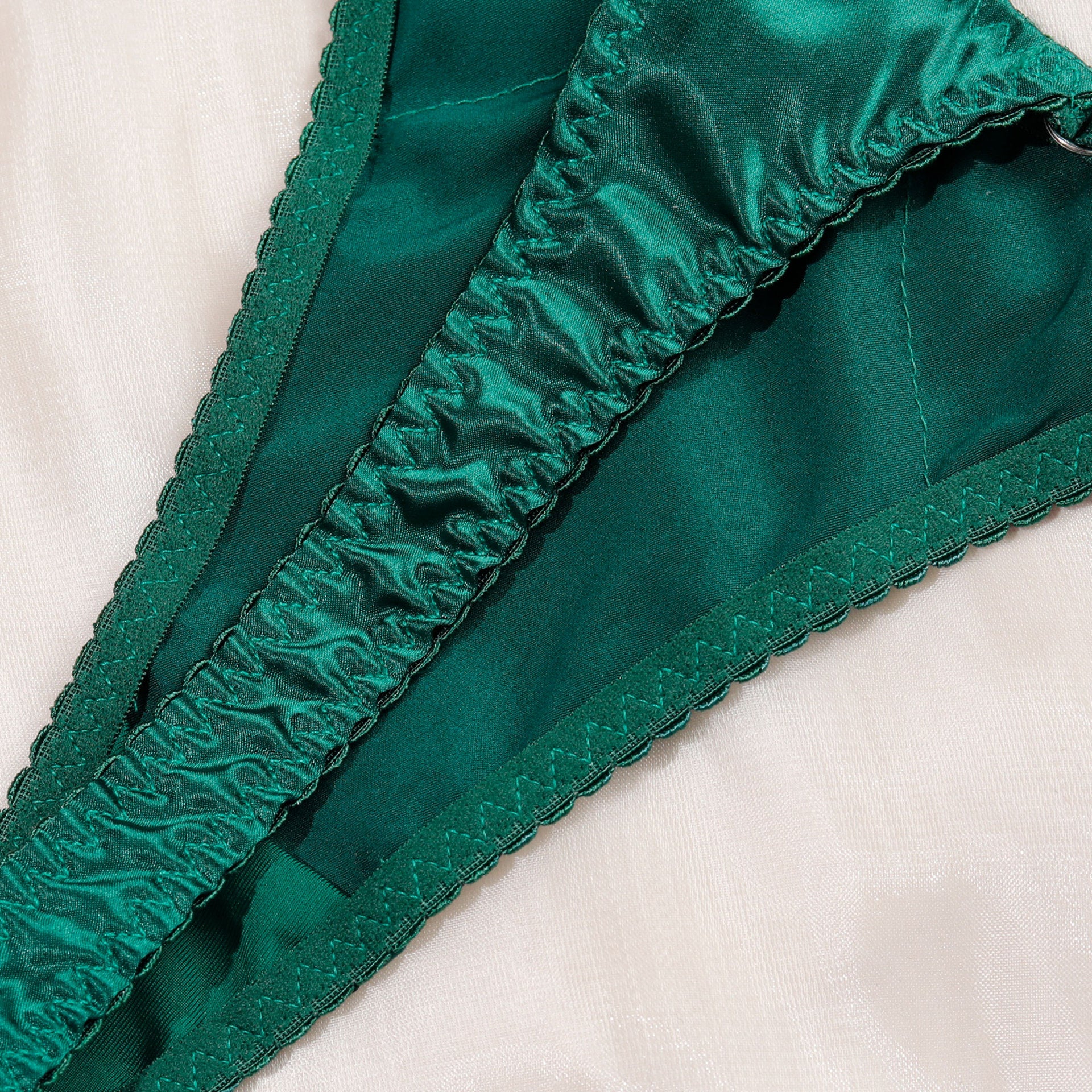Un souffle de luxe sur votre peau… L’ensemble « Emerald Kiss » séduit par son vert profond et ses détails brodés raffinés. Le soutien-gorge à armatures offre un maintien élégant, tandis que le string satiné, souligné de tulle brodé, sublime la silhouette avec sensualité. Une parure résolument féminine et sophistiquée, idéale pour une séduction subtile 💎