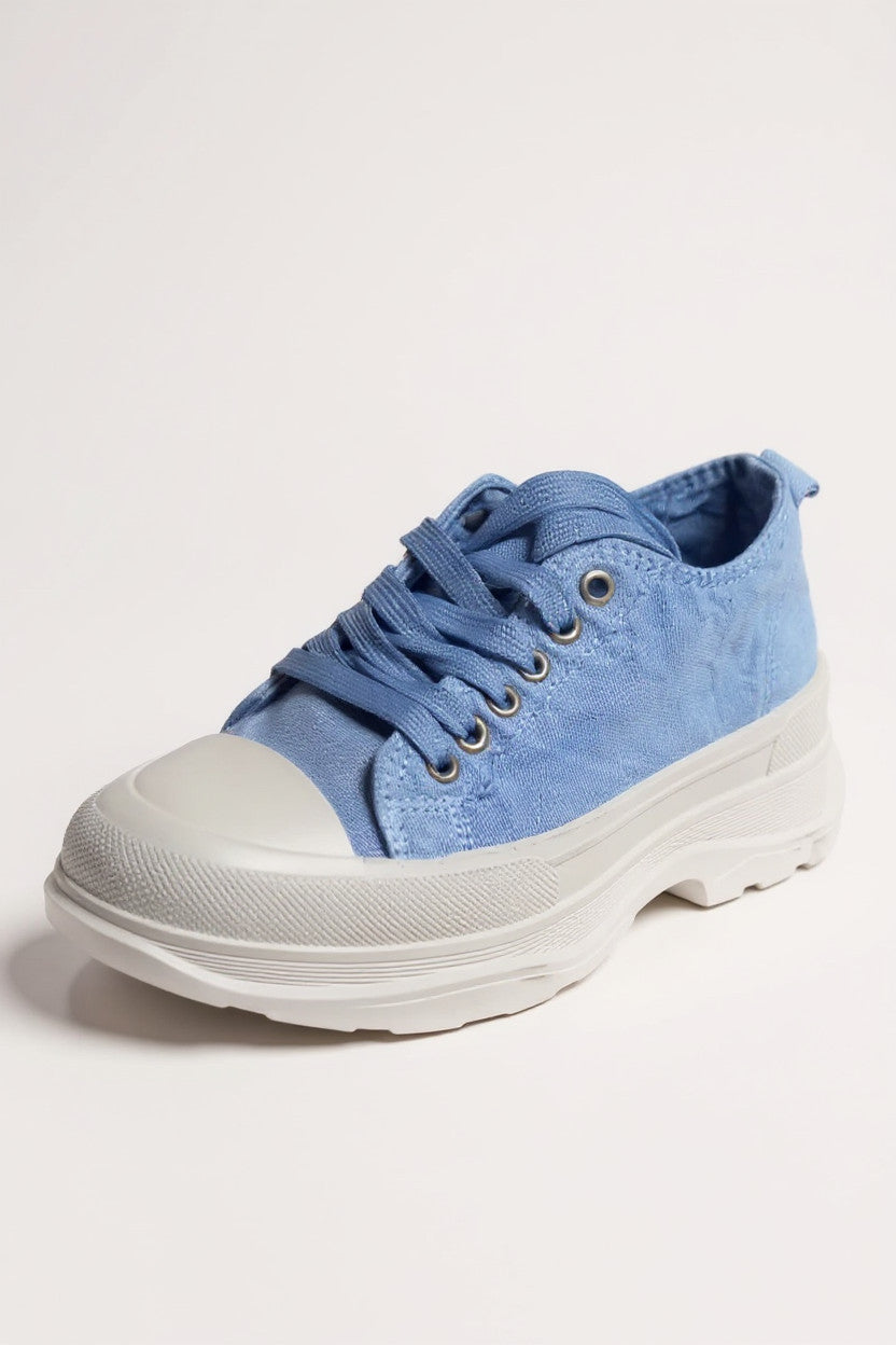 Ces baskets basses unisexes en toile au coloris Bleu apportent une touche de fraîcheur à tous les styles : du look décontracté au streetwear moderne.