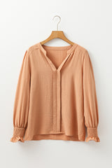 Ce chemisier est une pièce élégante et polyvalente, idéale pour toutes les occasions. Son col en V cranté met en valeur le décolleté tout en apportant une touche de sophistication discrète. Les poignets froncés ajoutent une note féminine et délicate, soulignant la coupe impeccable de la pièce. Avec sa teinte unie, il s’adapte facilement à une multitude de bas, offrant ainsi de nombreuses possibilités de styles, que ce soit pour une tenue décontractée ou plus habillée."