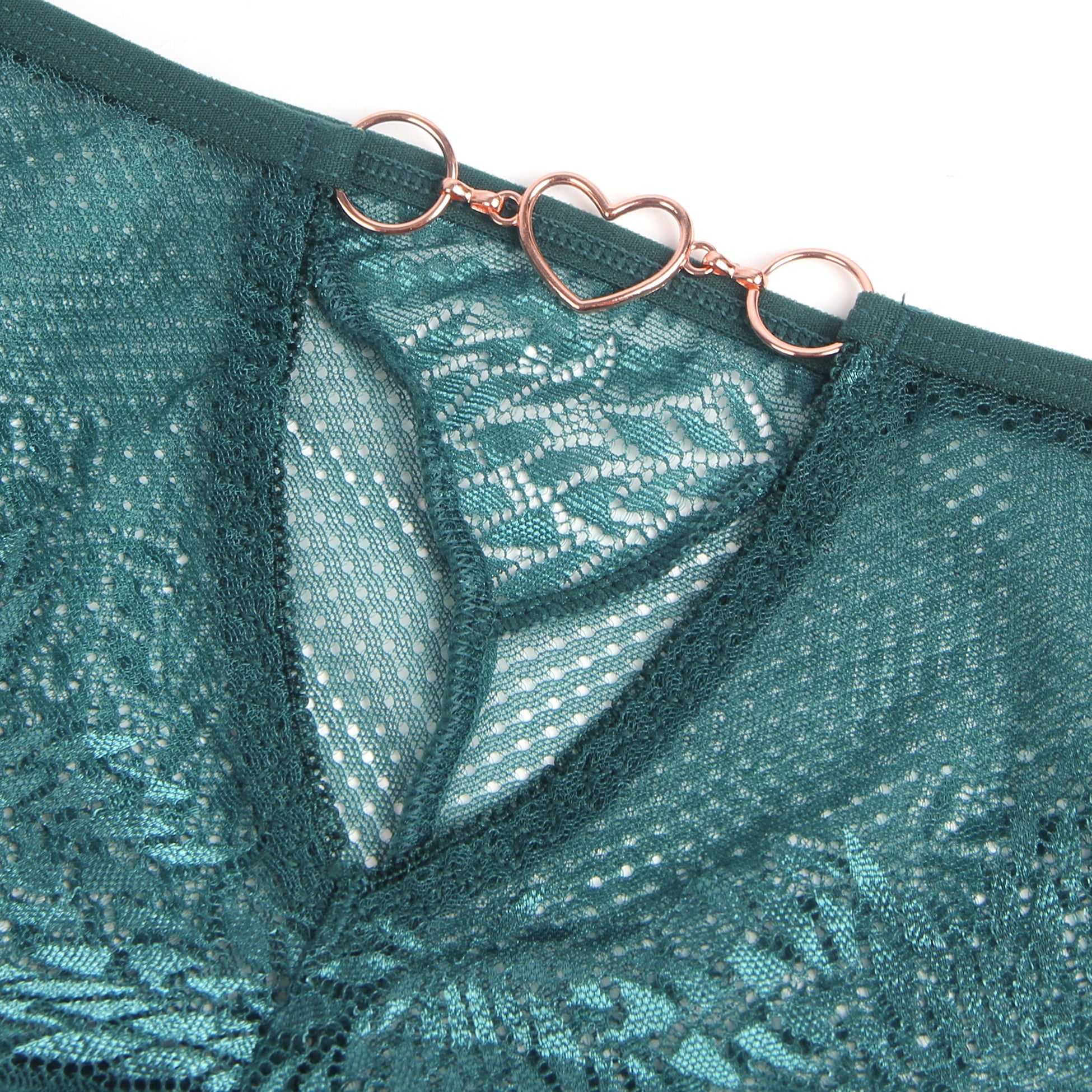 Culotte dentelle verte avec ouverture dos et anneau cœur
