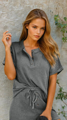 Son design à couleur unie lui confère une allure sobre et élégante, adaptée à toutes les occasions. Que ce soit pour flâner à la maison, faire des courses ou passer un moment convivial entre amis, cet ensemble sera votre allié au quotidien.