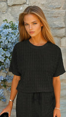 Plongez dans le confort absolu avec cet ensemble lounge alliant style et douceur. Idéal pour des moments de détente à la maison ou pour une sortie décontractée, cet ensemble coordonné vous assure une allure soignée sans effort.