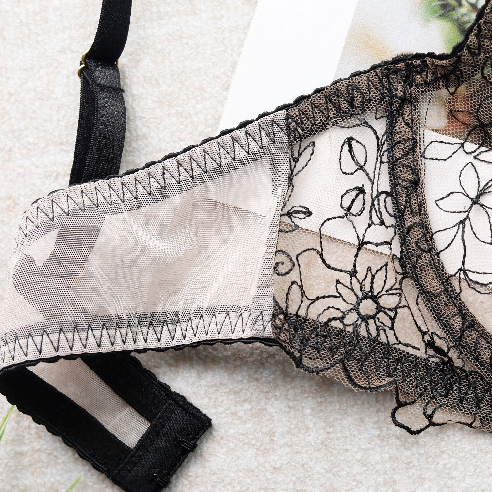 🌸 Soutien-gorge à armatures avec bonnets brodés transparents