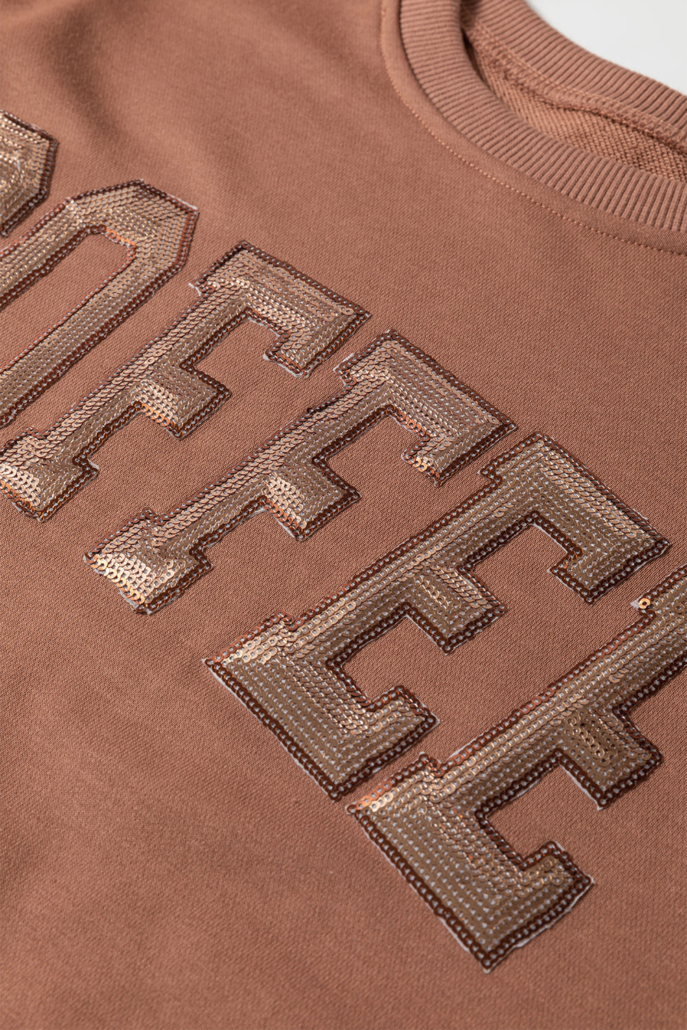 Le sweat-shirt orné de paillettes attire immédiatement les regards tout en conservant une coupe ample confortable. Associé à un short à jambes larges, cet ensemble est idéal pour une allure à la fois tendance, féminine et relax.