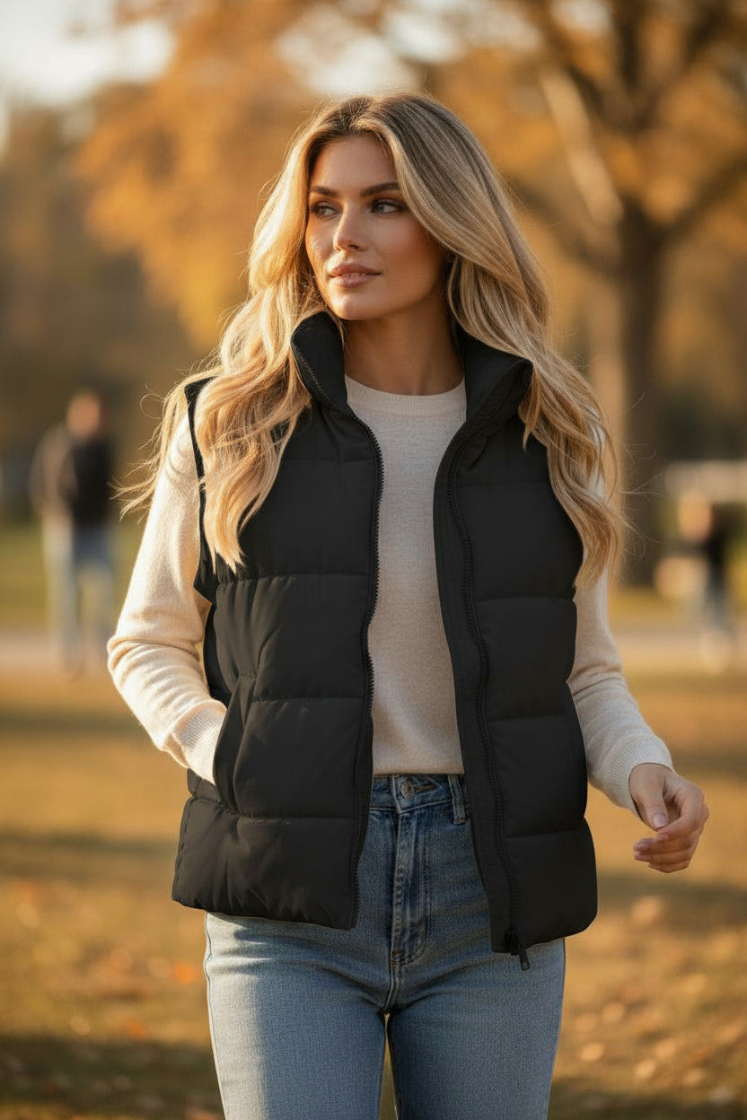 Adoptez un look à la fois décontracté et sophistiqué avec ce gilet oversize à col montant, parfait pour affronter la saison avec style.