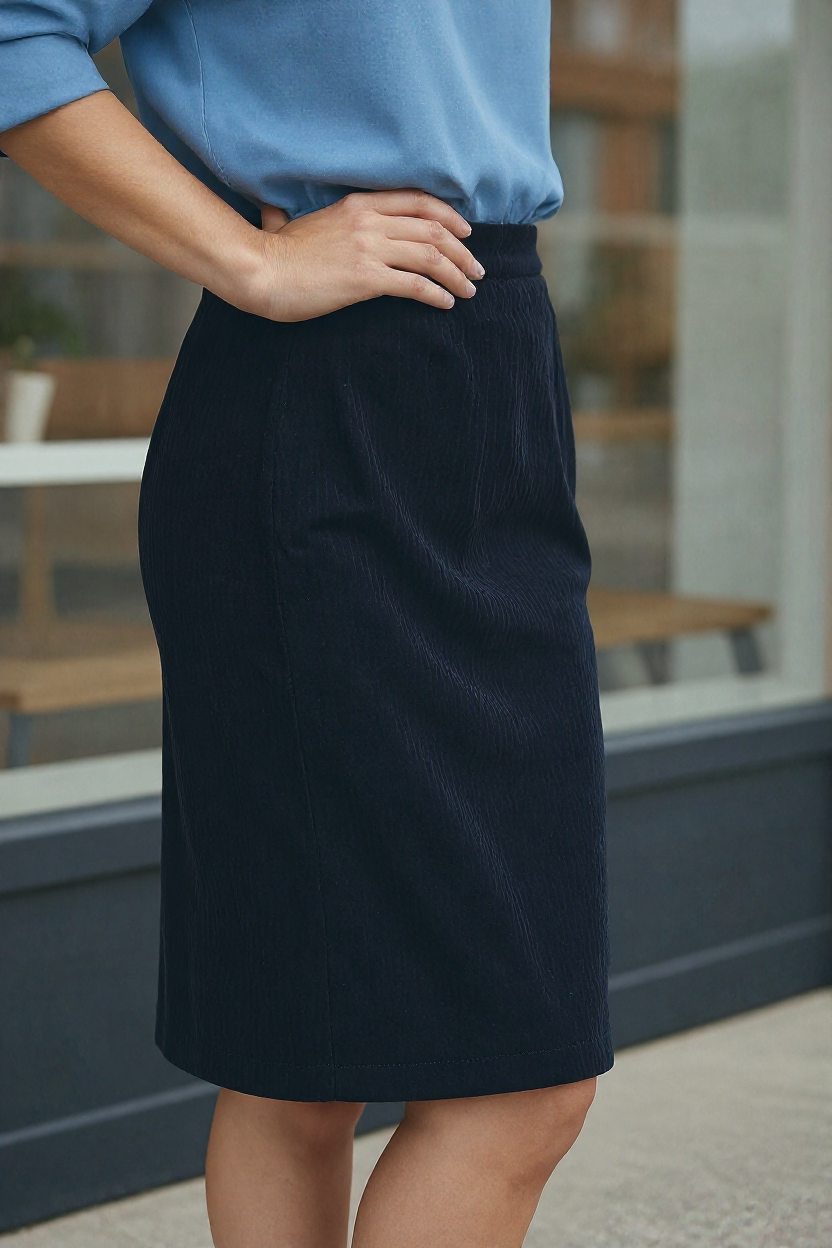 Cette jupe en velours côtelé incarne la silhouette féminine avec une coupe flatteuse, une matière épaisse parfaite pour la saison, et une fente arrière discrète qui souligne chaque pas avec élégance. Polyvalente et confortable, elle se décline en trois couleurs raffinées : bordeaux, bleu marine et gris.