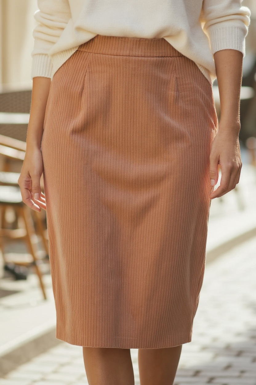 Jupe mi-longue en velours côtelé épais