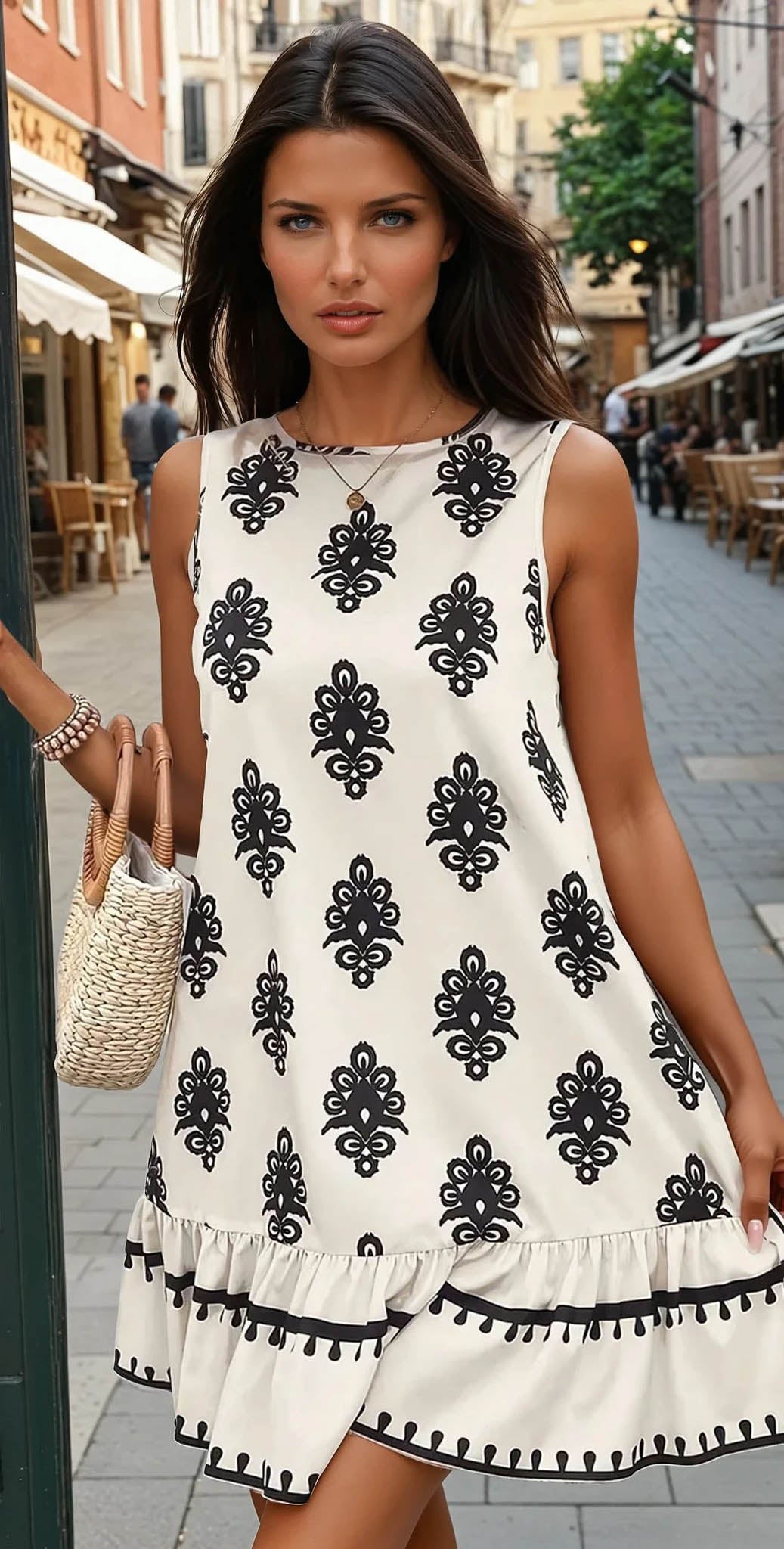 Cette robe arbore des imprimés géométriques saisissants qui insufflent une touche moderne et audacieuse à votre style. Son design sans manches garantit une légèreté et une sensation de fraîcheur idéale pour les journées ensoleillées ou les occasions décontractées.