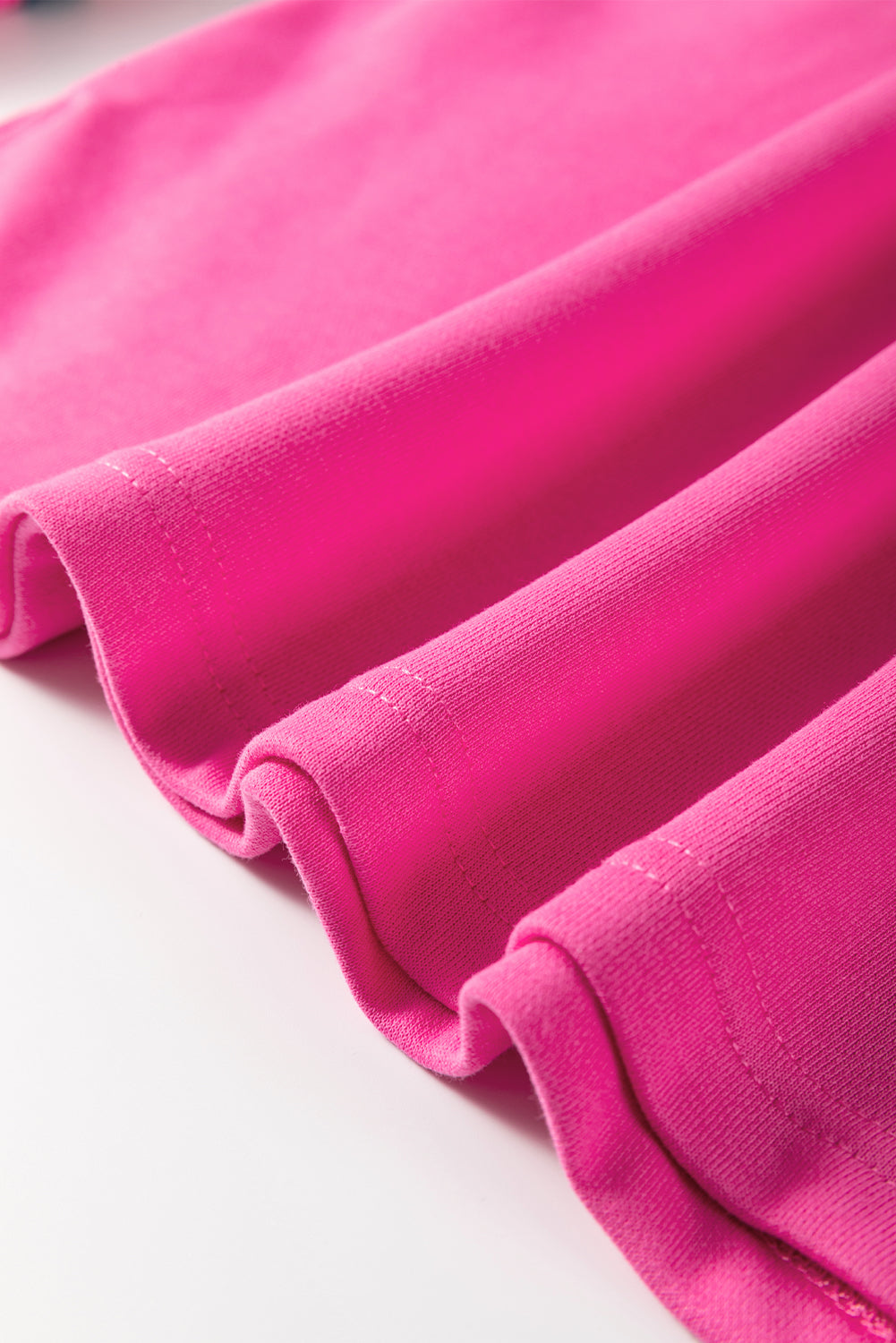Haut pull rose à imprimés mélangés et patchs à épaules tombantes.