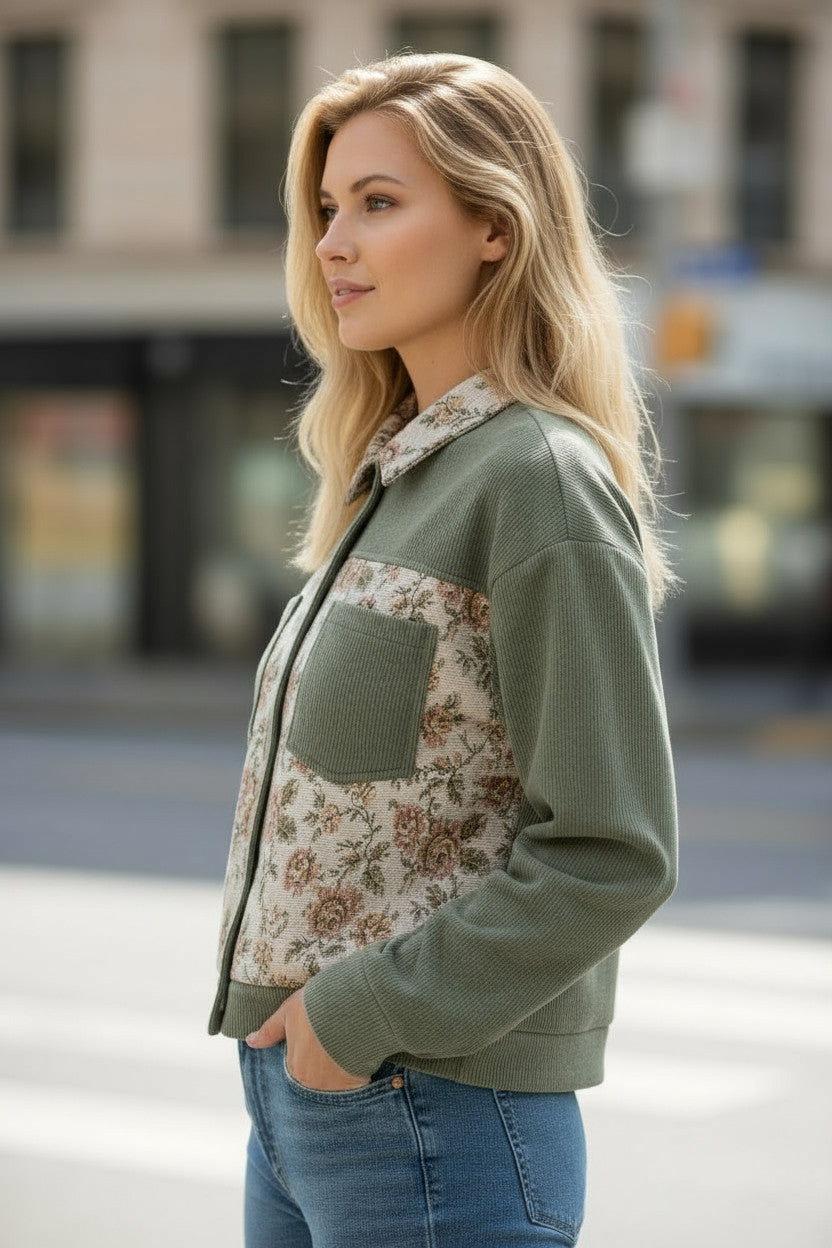 Affirmez votre style avec cette surchemise à patchwork floral rétro, parfaite pour apporter une touche vintage à vos tenues du quotidien. Son motif floral multicolore évoque l’esprit des années 70, tandis que la texture côtelée ajoute du relief et une sensation de douceur au porté.