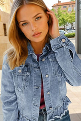 Apportez une touche d’audace et d’élégance à votre garde-robe avec cette superbe veste en jean à ourlet brut. Conçue pour les amateurs de mode avant-gardiste, cette pièce allie modernité et féminité grâce à ses détails raffinés de volants et sa coupe intemporelle.