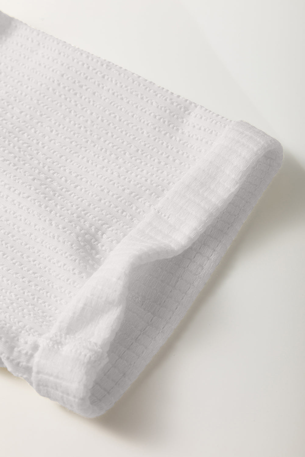 Haut blanc uni à col en V et manches 3/4 avec cordon de serrage et épaules tombantes.